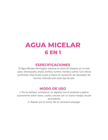 Modo de uso: Por la mañana, humedecer un algodón con el producto y aplicar suavemente sobre rostro, cuello y escote con un suave masaje circular ascendente. Repetir por la noche. No es necesario enjuagar.