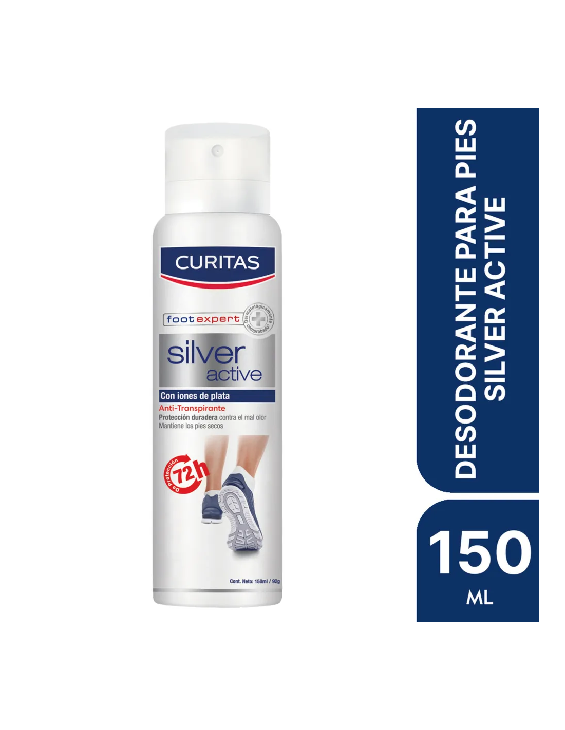 72 horas de protección contra el mal olor Fórmula innovadora con iones de plata Mantiene los pies limpios y secos No contiene alcohol y no irrita tu pie Clínicamente probado