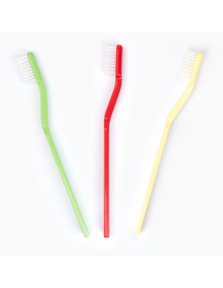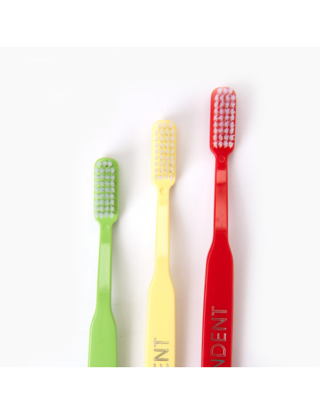 Cepillo para adultos de 4 hileras, cerdas suaves, cabezal compacto. Cerdas finamente redondeadas en su extremo, para una efectiva remoción en dientes y encías del BioFilm (Placa Bacteriana); principal responsable de las caries, enfermedades periodontales y sangrado de las encías. Mango recto y de bordes redondeados, permiten un mejor control para una correcta técnica del cepillado.