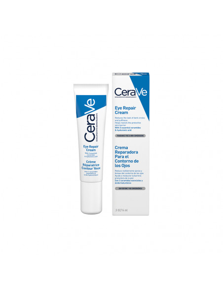 Desarrollado con dermatólogos, la Crema Reparadora para el Contorno de Ojos de Cerave hidrata la zona de los ojos, reduce ojeras y bolsas. Con una formula compuesta por 3 ceramidas esenciales y ácido hialurónico, logra una piel más brillante y suave mientras que restaura y protege la barrera natural de la piel. Crema con textura liviana, libre de fragancias, con acabado no grasoso. Apto para pieles sensibles.