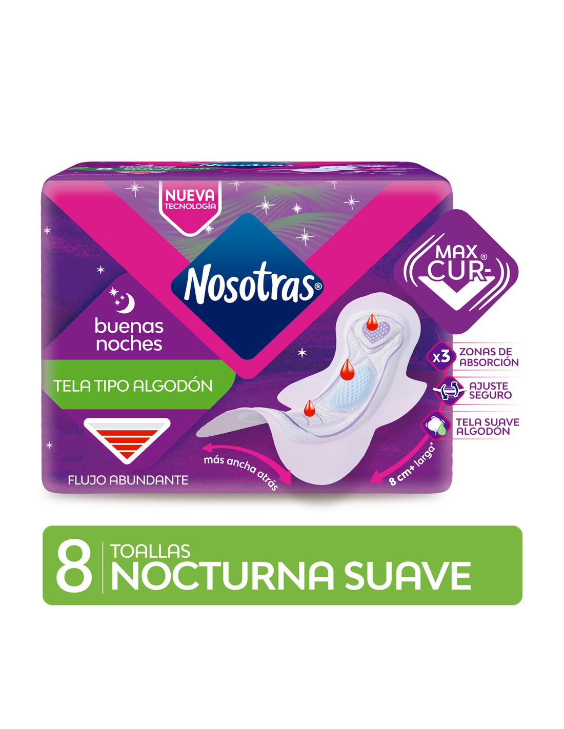 Nosotras Toalla Buenas Noches Tela Tipo Algodón x 8 Unidades