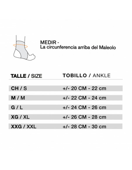 Soporte de tobilla indicado para procesos de rehabilitación, traumatismos ligeros, prevención de lesiones y la práctica deportiva.