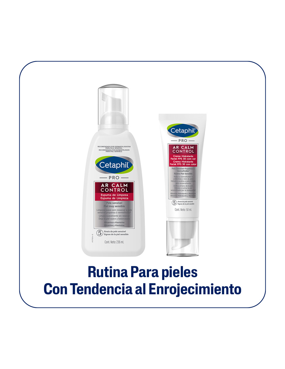 EL KIT CONTIENE: 1 CETAPHIL PRO AR CALM CONTROL espuma de limp.x 236 ml + 1 CETAPHIL PRO AR CALM CONTROL HIDRATANTE FACIAL cr.x 50 ml c/color/FPS30