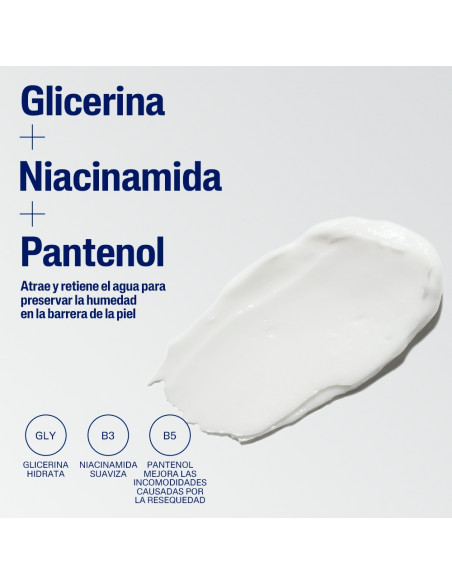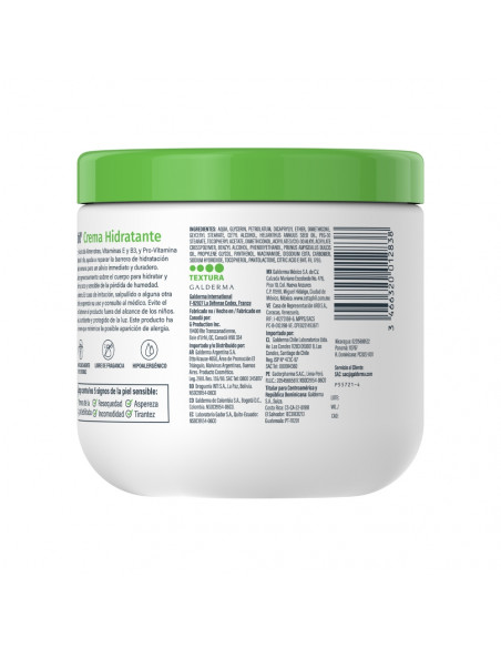 Agua, glicerina, palmitato de isopropilo, alcohol cetearílico, ceteareth-20, pantenol, niacinamida, acetato de tocoferilo, dimeticona, aceite de Persea gratissima, aceite de semilla de Helianthus annuus, pantolactona, estearato de glicerilo, benzoato de sodio, alcohol bencílico, ácido cítrico. FIL.1745.V00
