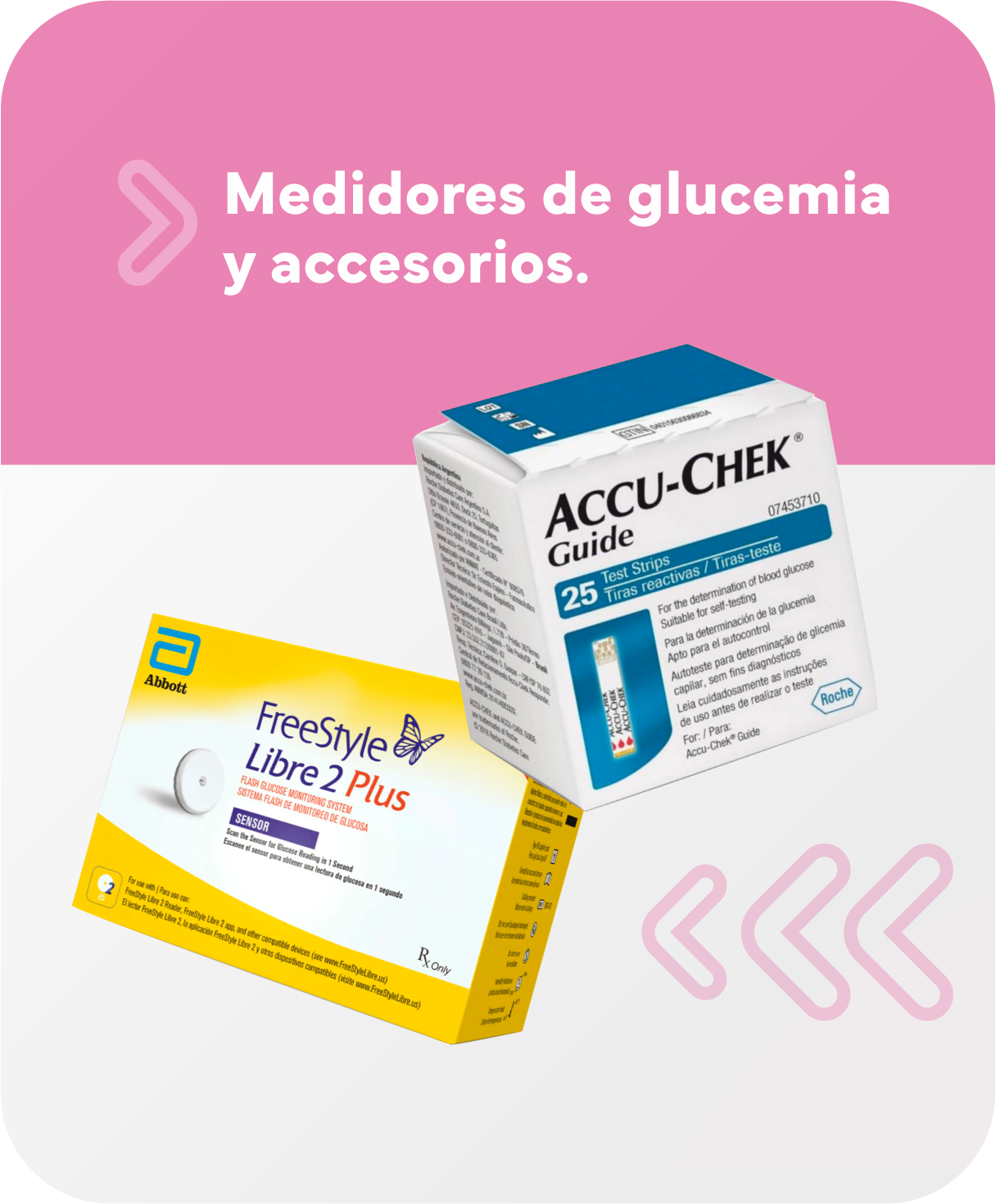 - Tiras reactivas, baterías para medidores de glucemia, nebulizadores y tensiómetros.